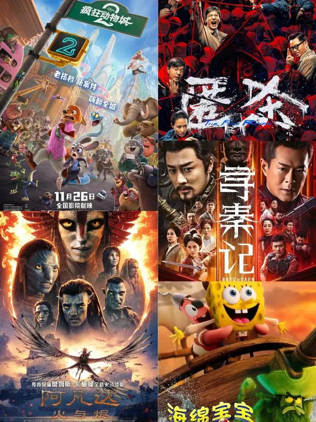 档期新片中有经典穿越剧电影版《寻秦记》、悬疑犯罪片《匿杀》、申奥执导取材于真实事件的《用武之地》、成龙突破以往形象的《过家家》、颇受儿童欢迎的动画《海绵宝宝:深海大冒险》……此外,此前上映的两部爆款IP大片《疯狂动物城2》《阿凡达3》也依旧吸引力十足。